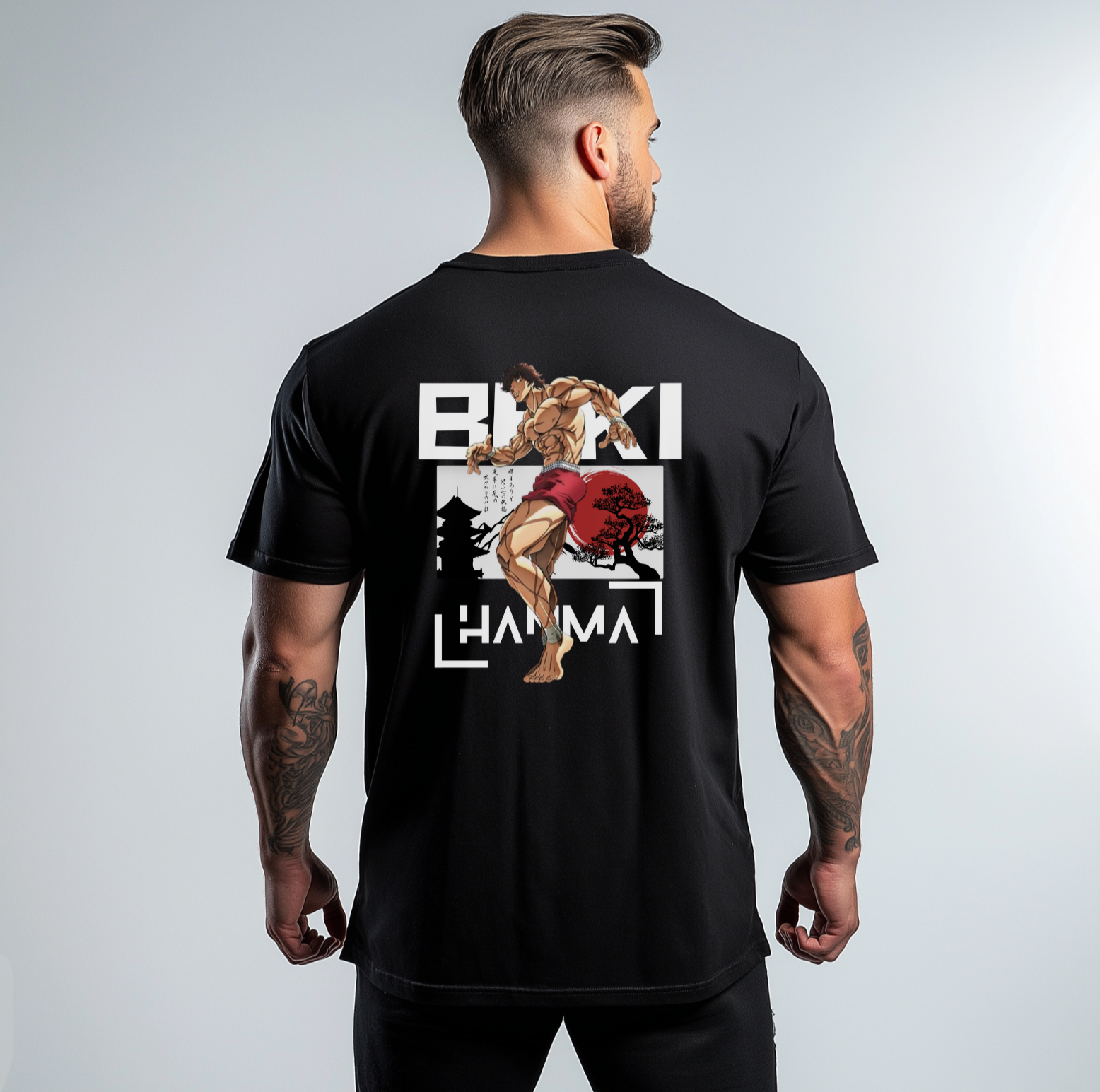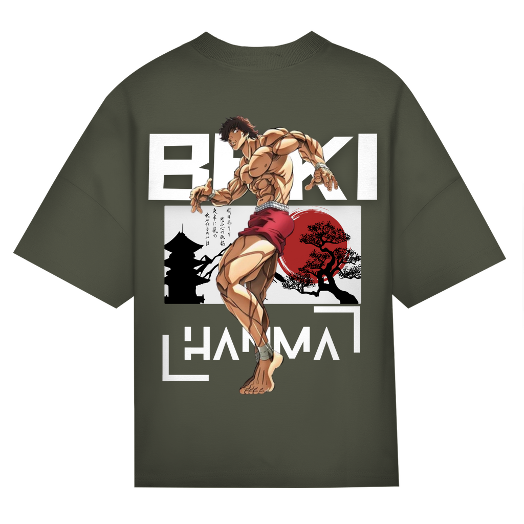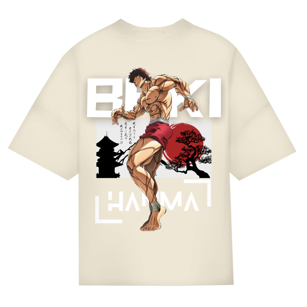BAKI PUMPCOVER Oversize T-Shirt Backprint - Kämpfergeist auf Stoff
