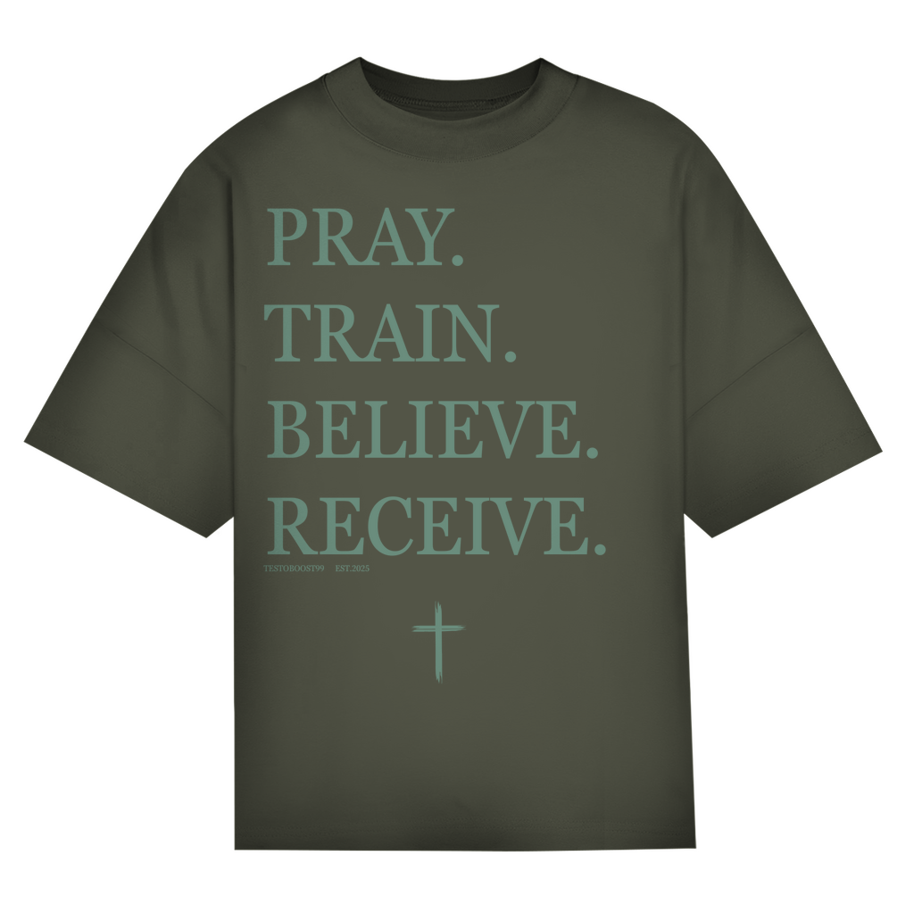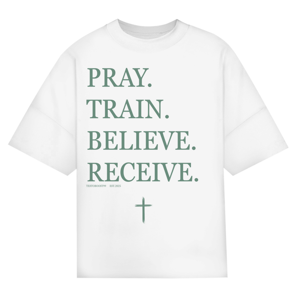 PRAY, TRAIN Oversize T-Shirt Frontprint - Let’s lift – mit Stil und Statement